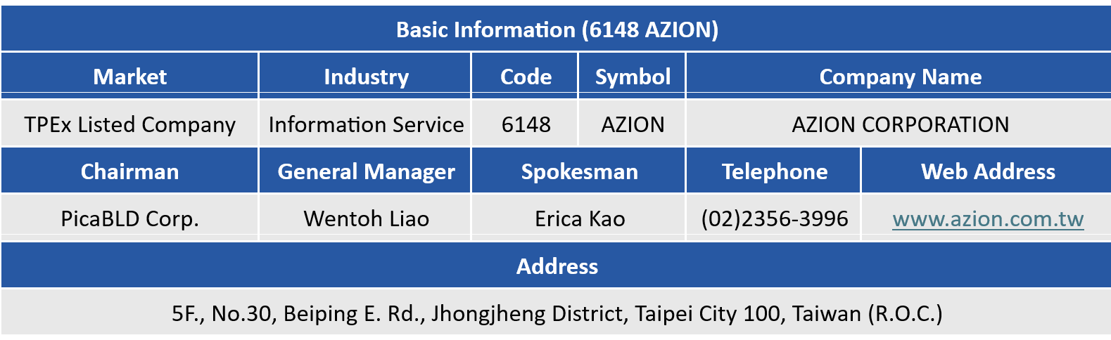 Established in 1991, Azion Corporation, a Taiwan-based company, provides solutions in Information Technology, Networking, Big Data Analytic, AI Video Analytic, and e-Loan. Azion Co. has been dedicating in providing services to customers in various industries include financial, law-enforcement, government departments, and all sizes of enterprises.