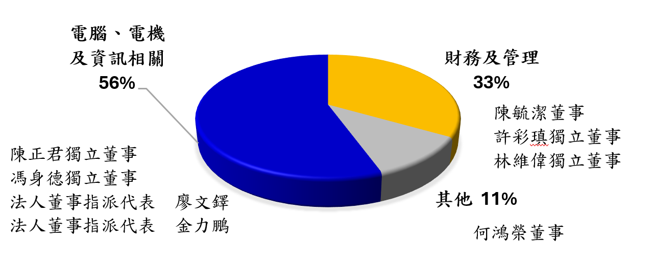 現任董事會成員由九席董事組成,業已包含不同產業背景之專長領域: