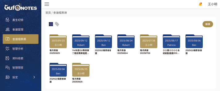 GufoNotes 慧議通提供完整的會議轉錄與摘要功能,讓會議資訊即刻變成可檢索、可傳承的企業知識資產: