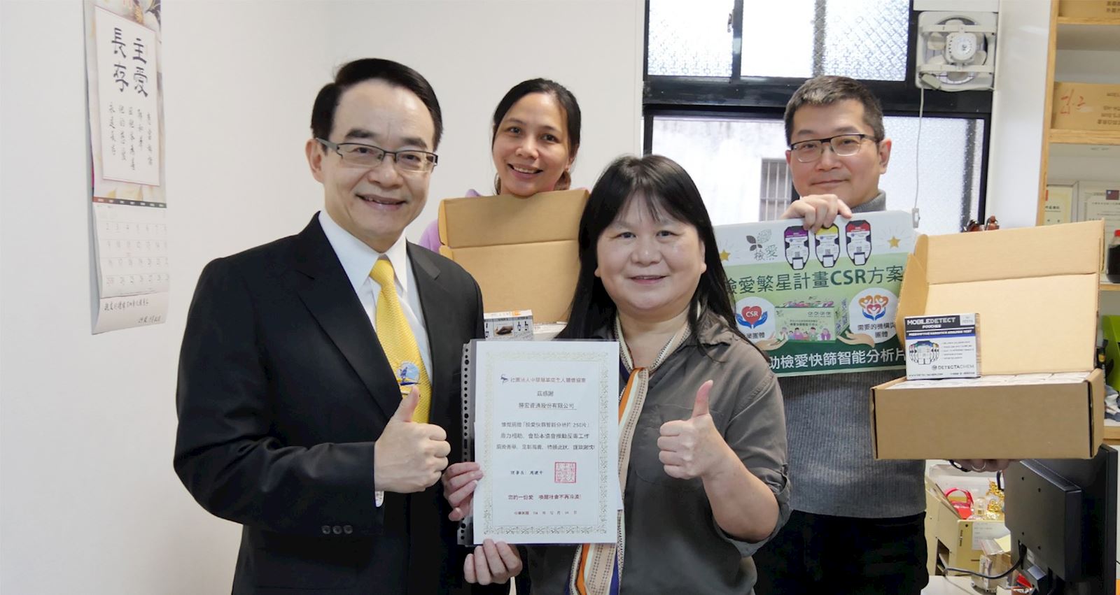 為推動反毒,資訊服務廠商驊宏資通(6148)於12月4日由ESG委員會代表,前往拜會位於新北市中和區的「社團法人中華隱基底全人關懷協會」,並捐出價值五萬元,共240片的檢愛快篩智能分析片。