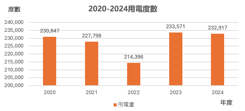 2024年節能減碳成果如下:年用電量為232,917度,較2023年稍減654度;計碳排放量為110,403kg,較2023年減少18,995kg,下降約14.68%。綜觀近五年數據變化,估計受到2019年底開始的COVID-19全球大流行,以及接下來三年多的疫情影響,故相關數據尚在回歸正常營運表現當中,本公司會持續關注,並落實相關節能減碳宣導及措施,致力改善並確實達成減碳目標。此外,2024年能源密集度為6.21(GJ/人)。以上相關數據涵蓋範圍為驊宏資通總公司。
