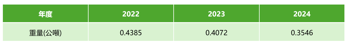 以此為基礎,透過下列公式,回推2022-2024年之廢棄物重量如下。(相關數據涵蓋範圍為驊宏資通總公司)