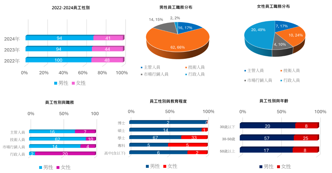 驊宏資通力求平等對待員工,不因性別、宗教、種族、國籍、黨派差異而有所不同,並在職務及薪酬等改善調整實質差距。