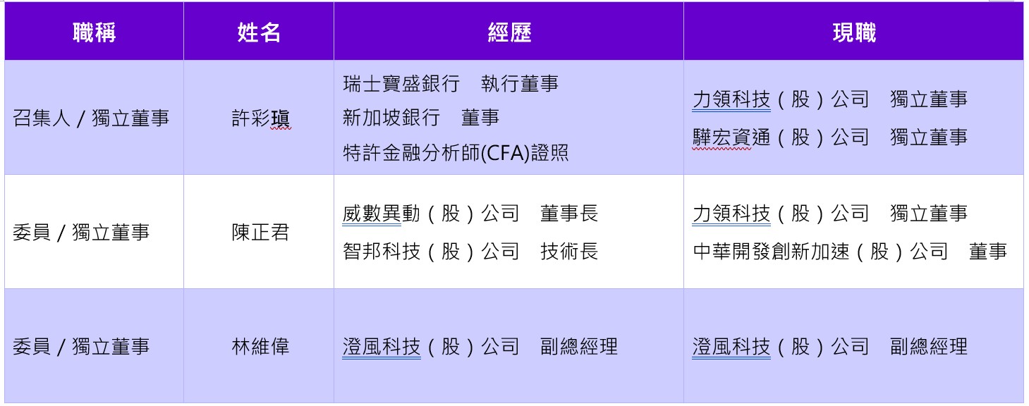 本委員會由董事長推舉至少三名董事,由其中一人為召集人,經董事會通過後組成。成員名單如下